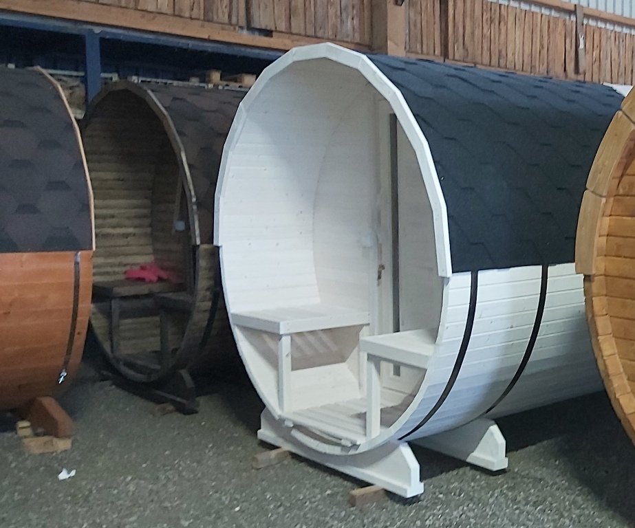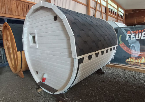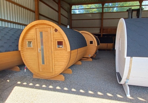 Da wir unsere Saunafässer selber in unserem Werk in Litauen produzieren, haben wir ständig Fässer zur Besichtigung und zum direkt mitnehmen immer auf Lager.