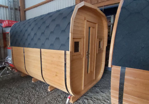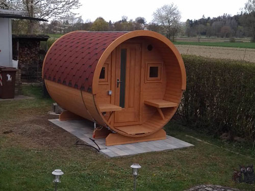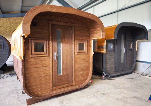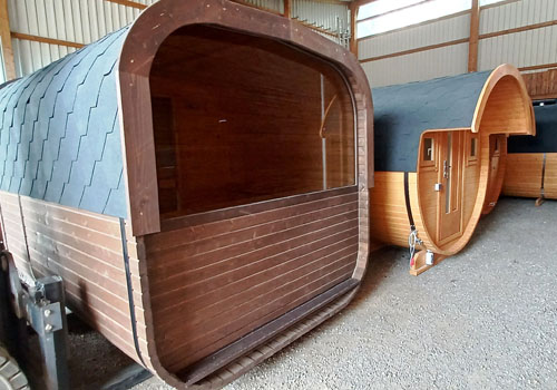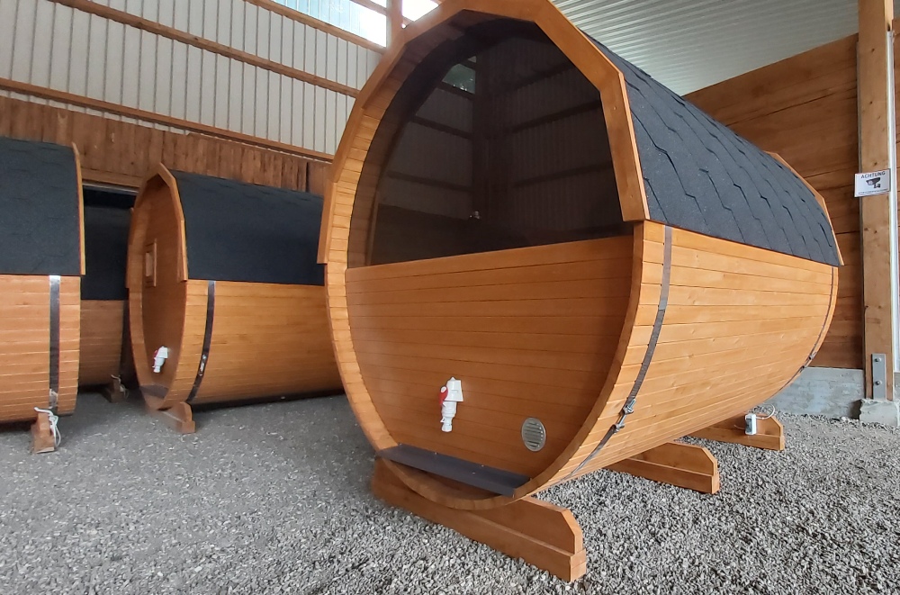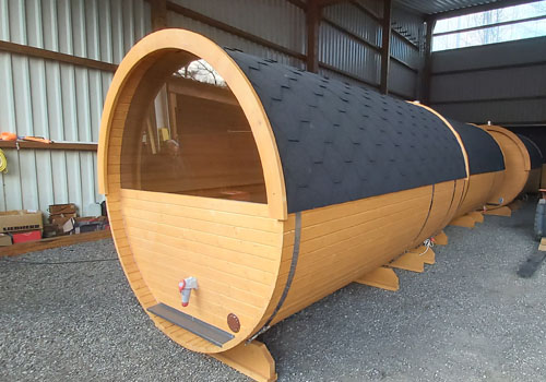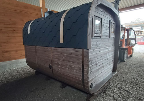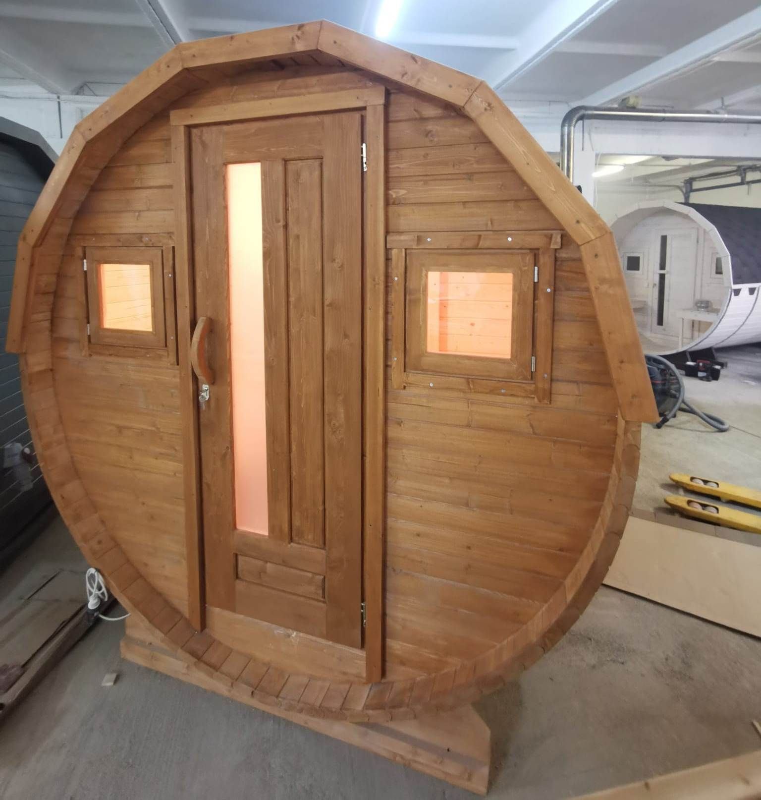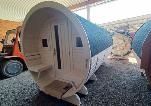 Unsere Saunafässer werden von uns in Litauen hergestellt. So können wir kurzfristig Standardmodelle, aber auch Saunen nach Kundenwunsch produzieren.