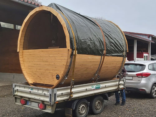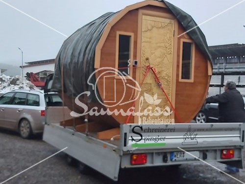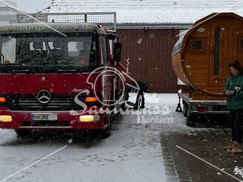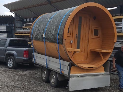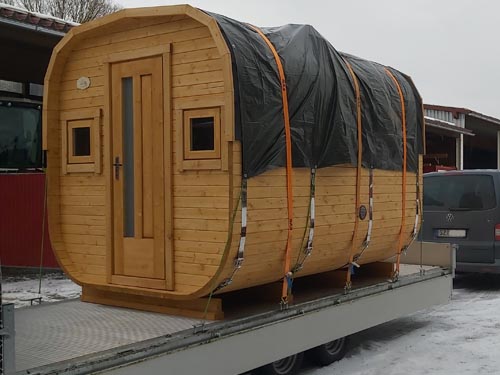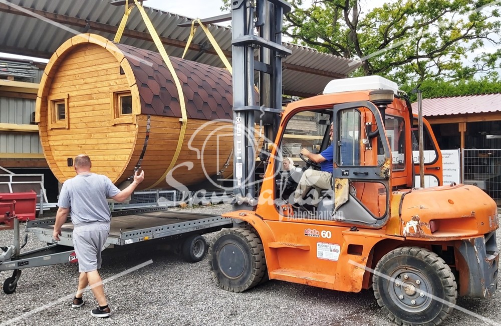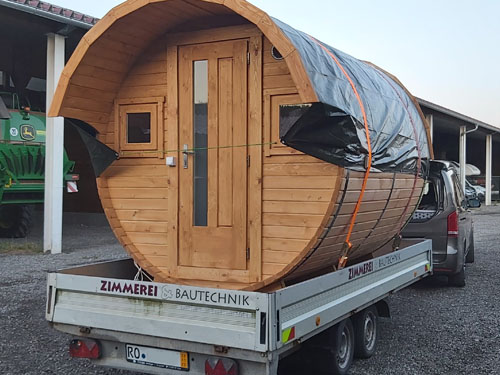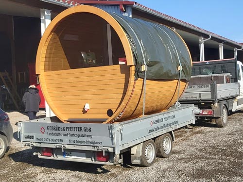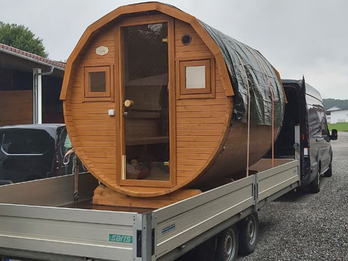 Nachdem Sie sich Ihre Sauna bei uns vor Ort angesehen haben und sich entschlossen haben, diese käuflich zu erwerben, können Sie Ihr Saunafass sehr gerne auch bei uns selber nach terminlicher Rücksprache abholen.